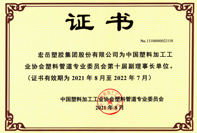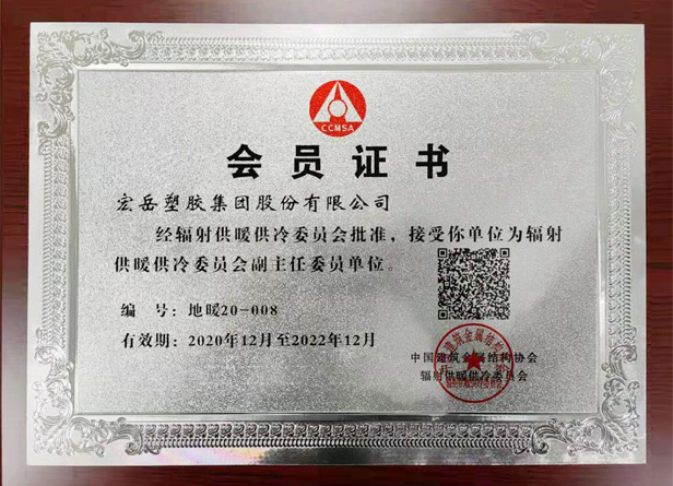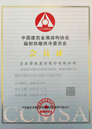 当选中塑协塑料管道专委会副理事长单位,中国建筑金属结构协会地暖委员会副主任委员单位,湖北今年会有限公司正式成立。