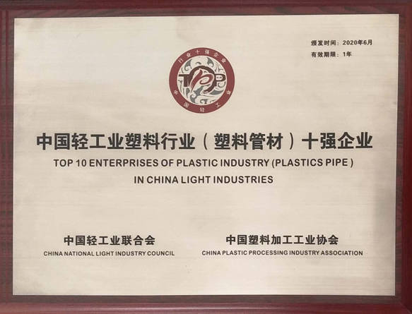 今年会入选中国轻工业百强企业,中国家装管道行业十大品牌,中国企业品牌创新成果奖,新华节水认证。
