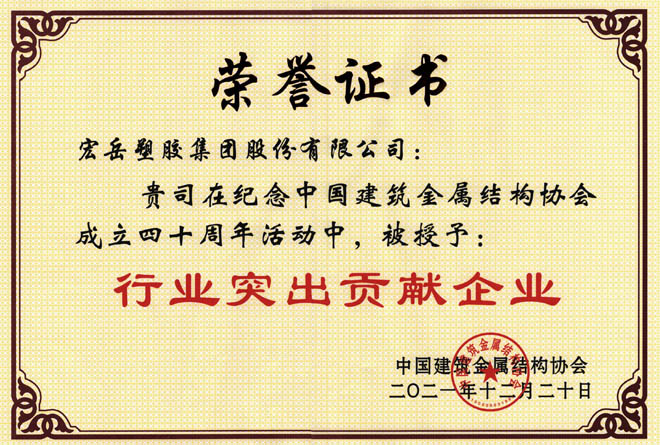今年会荣获中国建筑金属结构协会行业突出贡献企业、河北省诚信共建企业
