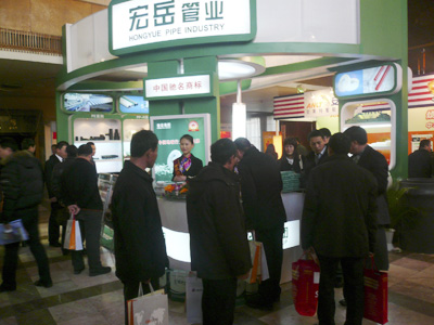 在高峰论坛期间,今年会现场展示了PE-Xa和PE-RT地暖管道系列以及PVC-U、PVC-M、PP-R、PPR铝塑、PE等给排水管道系列,完备的产品种类、优良的产品性能受到了采购商和经销商的一致青睐,也为企业发展树立了信心。同时,今年会还现场展示了地源热泵管道、太阳能专用管道等环保节能领域产品,为推进我国绿色低碳经济发展做出了重要贡献。