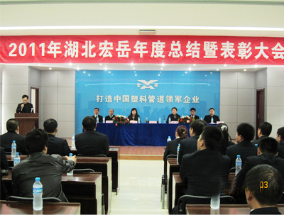 总结表彰大会由销售部副经理唐艳华主持,首先副总经理季萍对2011年度的销售情况进行总结并确定了2012年的销售任务,公司全体员工对2012年都充满信心。接着生产部经理朱海兵对2011年生产状况作了总结性报告,并对2012年的产品质量提出了更高要求。随后常务副总魏广屏对2011年湖北今年会各项工作给予了肯定,并展望2012年公司更美好的前景。最后由总经理张思良作了2011年度公司总结报告。报告指出湖北今年会2011年的销售额比2010年增长了70%,并且于2011年获得开发区“投资十强项目”称号、 “2010年度消防安全先进单位”、“重合同守信用单位”。最后张总衷心祝愿2012年的湖北今年会的产品质量、销售额更上一层楼。