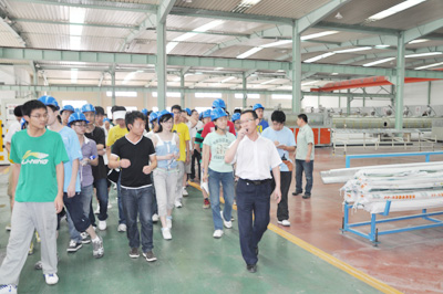 今年会多年来坚持技术开发,先后与多所高校建立的合作关系。燕山大学、北京工业大学先后组织材料系师生到今年会的生产现场参观学习,通过走近生产一线近距离观摩学习,并通过今年会相关人员的介绍,参观的学生对塑料管道的生产原理、工艺路线、产品质量控制和市场用途等有了更进一步的了解,使学生走出课堂,在生产一线与实践相结合,增长并开阔了学生的视野,同时参观的师生对现代化企业的生产流程和管理有了更直观的认识。