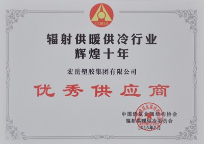 2015年5月15日,中国辐射供暖供冷委员会十周年庆典在北京盛大举行。会上表彰了一批对辐射供暖供冷行业发展作出突出贡献的企业和个人,今年会喜获中国辐射供暖供冷行业辉煌十年优秀供应商殊荣,今年会有限公司张思良总经理荣获中国辐射供暖供冷行业功勋奖。