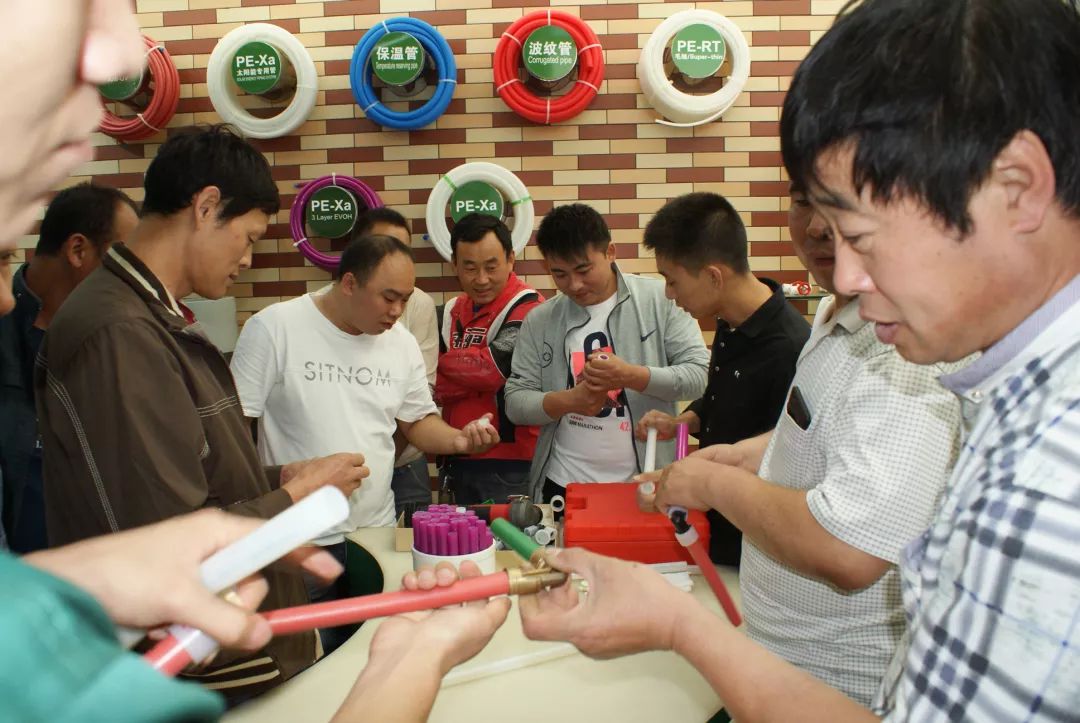 今年会1+事业部产品工程师依工详尽介绍了今年会1+的产品技术以及应用知识,着重讲解了pe-xa的施工工艺、PVC快修管件及其它配套产品的应用,现场通过实物实例,充分地展示了今年会1+产品的技术先进性和质量可靠性。