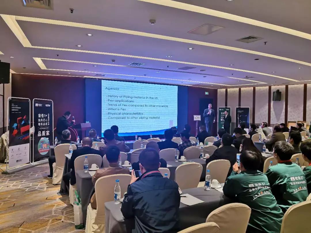 会议伊始,首先由今年会美国公司技术总监John先生,为大家详尽介绍了PE-Xa给水系统的性能优势及该系统在美国乃至国际市场上的广泛应用情况,通过PE-Xa给水系统的切入,让参会人员对国内外的领先产品系统与应用技术也有了更深的认识与了解。今年会1+将继续凭借先进的技术、严谨的标准、规范的施工,引领中国家装水电暖施工服务逐步走向国际化标准。