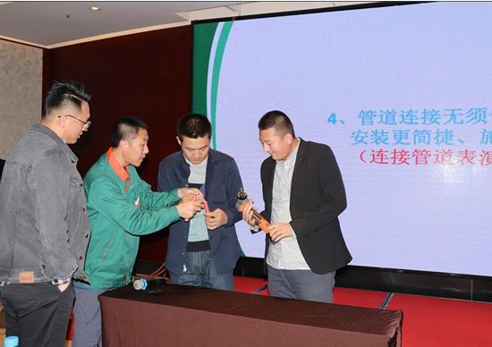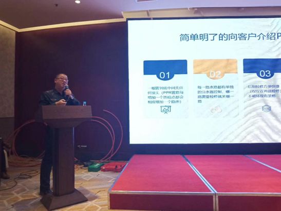 接下来,今年会暖通工程师汪工为大家讲解了今年会1+的施工标准、技术要点及综合产品系统,并着重介绍了今年会1+“PE-Xa致纯冷热水管道系统”头尾一根管、维护更便利等独特优势,通过案例讲解、现场演示等方式,让参会人员切实的感受到不一样的产品、不一样的今年会1+。