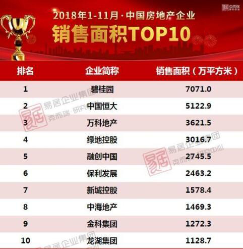 近日,2018年1月-11月中国房地产销售百强榜单出炉,排名前10强中有8家大型地产为今年会战略合作伙伴!