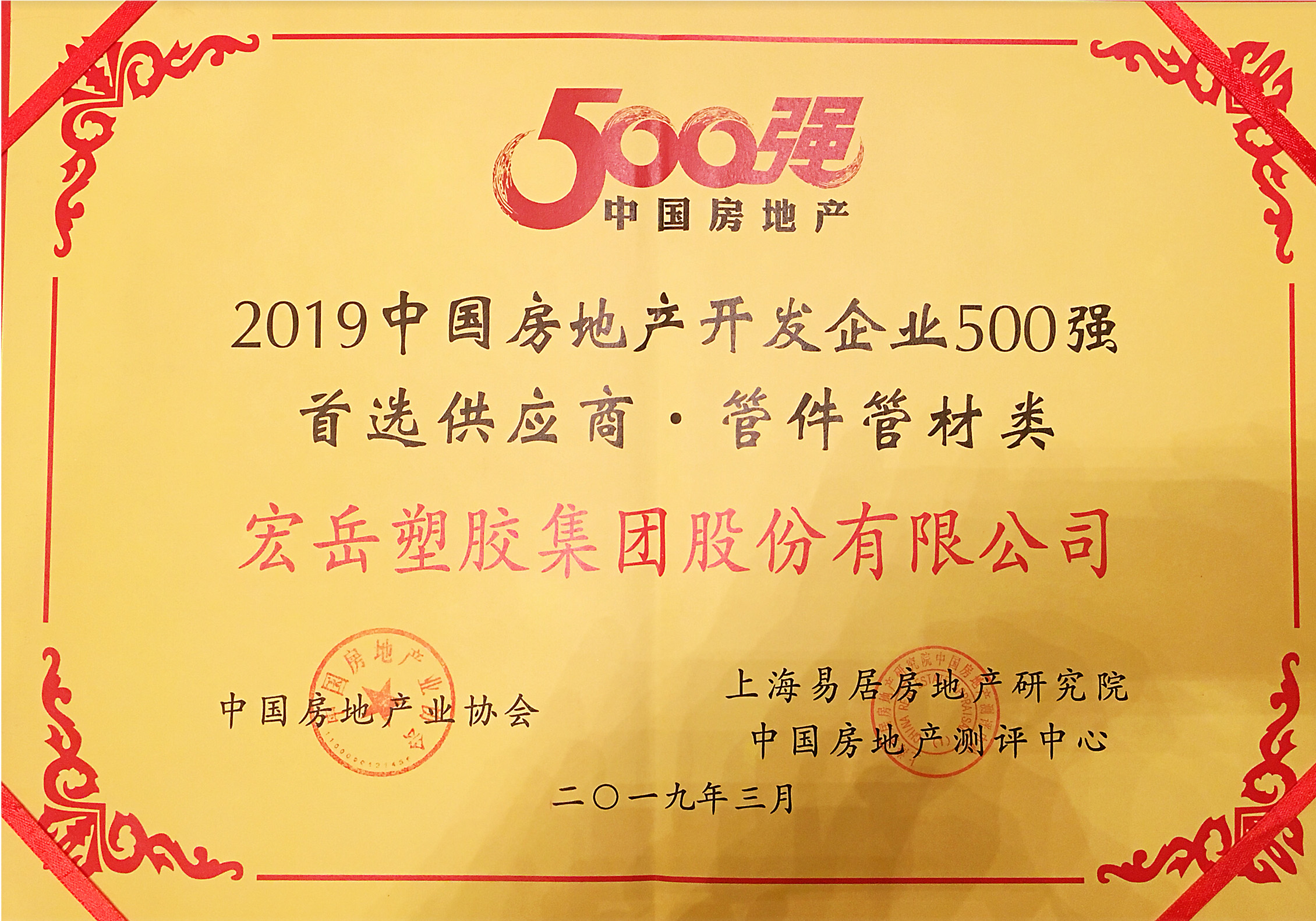 今年会连续6年获得“中国房地产开发企业500强首选供应商”。今年会深耕塑料管道行业,20几年如一日,坚守品质、不忘初心。