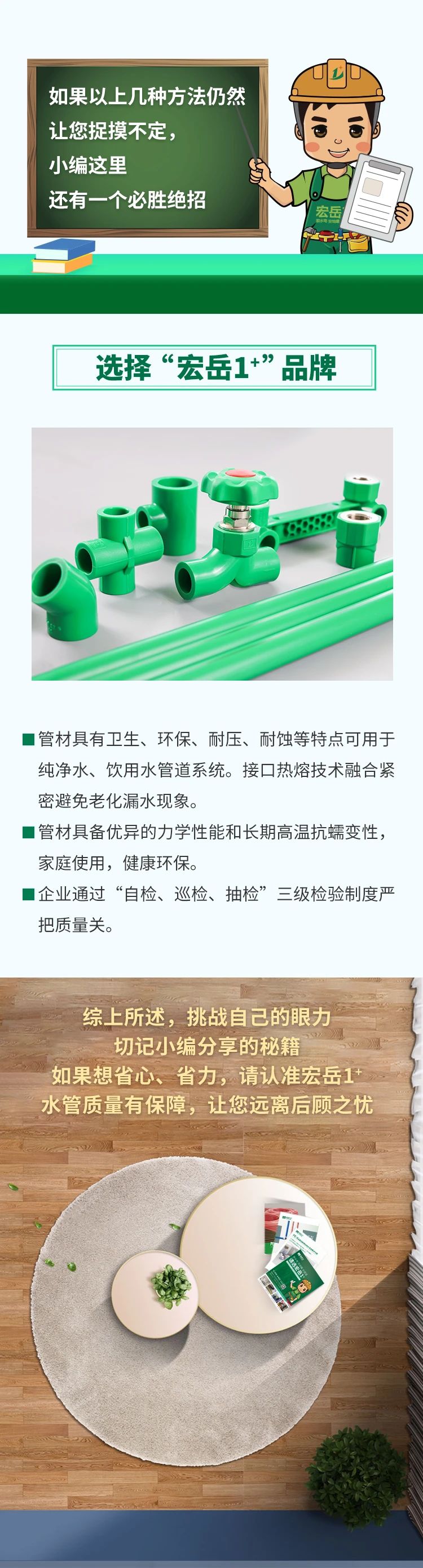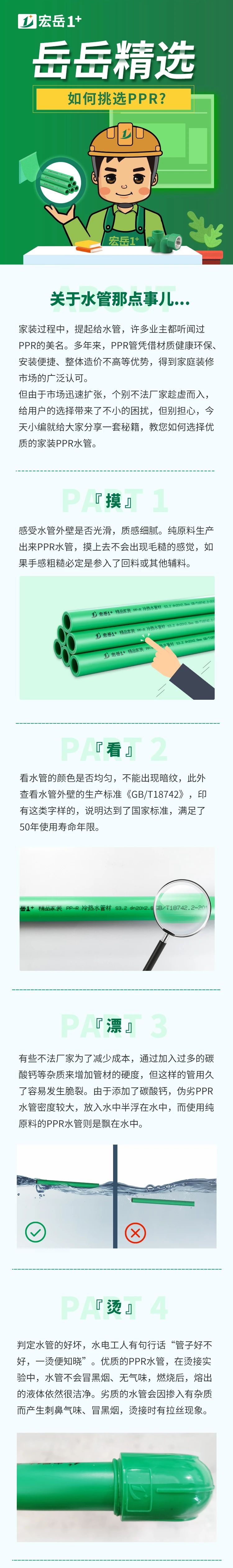 家装过程中,提起给水管,许多业主都听闻过PPR的美名。多年来,PPR管凭借材质健康环保、安装便捷、整体造价不高等优势,得到家庭装修市场的广泛认可。今天今年会就给大家分享一套秘籍,教您如何选择优质的家装PPR水管。
