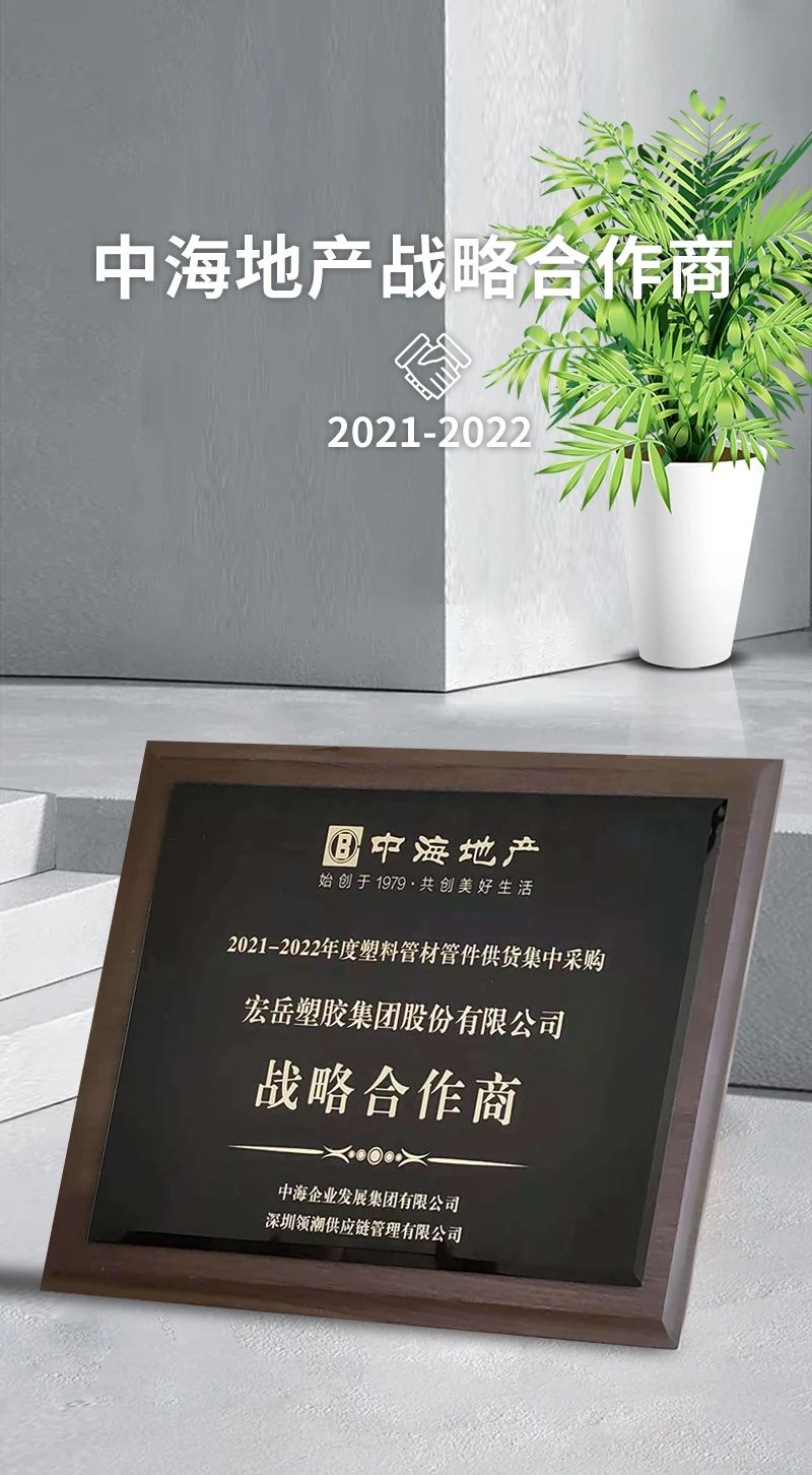 今年会荣获中海地产2021-2022年度塑料管材管件供货集中采购战略合作商。