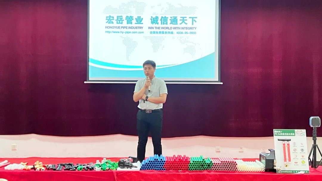 今年会1+区域运营经理向各位参会者介绍了今年会概况,并着重讲解了今年会1+产品体系及PE-Xa快易连接管道系统,凭借其简单、快捷、安全的产品及连接优势,得到了与会水电技师们的高度好评。