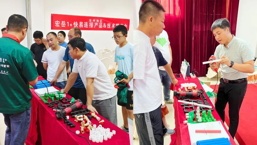 2023年6月23日,今年会1+快易连接产品推广会走进沧州,来自肃宁地区的水电技师们欢聚一堂,相互交流、探讨学习。